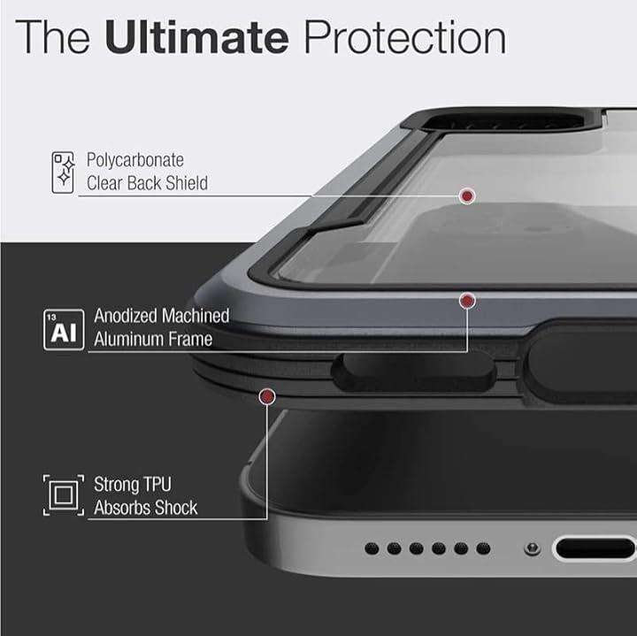 アルミニウム + ポリカーボネイト + TPU の3種類の素材を使用したデザイン・衝撃吸収を両立したスタイリッシュなケースです。