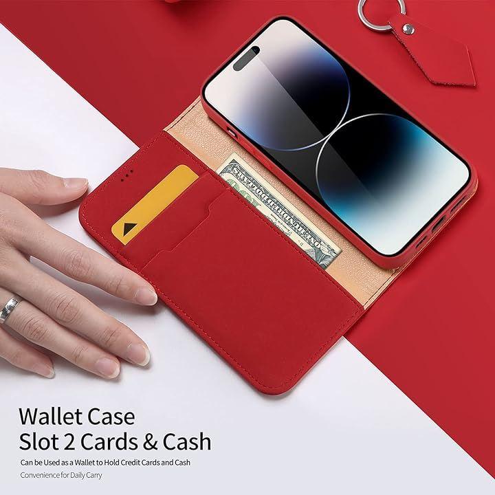 2枚収納可能ウォレット付き機能:iPhone14 Pro カバーの内側に2枚のカードスロットと1枚のサイドポケットがあり、クレジットカード、通常のチケット、名刺、紙幣などを収納できます。