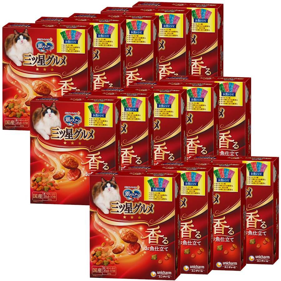 香ばしく焼き上げた粒に贅沢な素材のうまみたっぷりでおいしく仕上げました。猫ちゃんが喜ぶお魚のおいしさがひと箱に4種類詰まった贅沢なおいしさです。<総合栄養食>