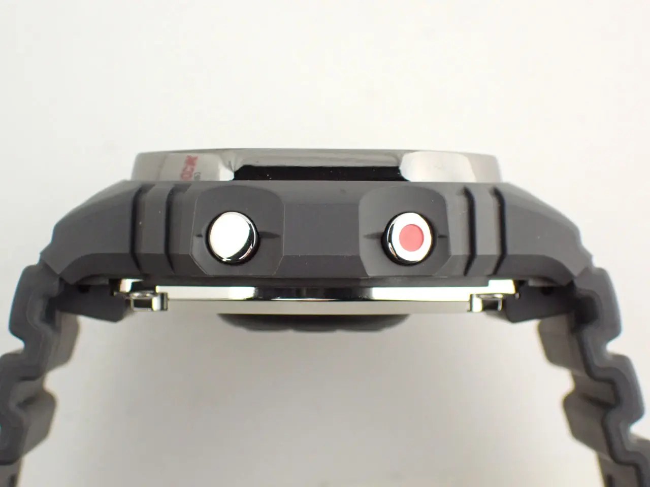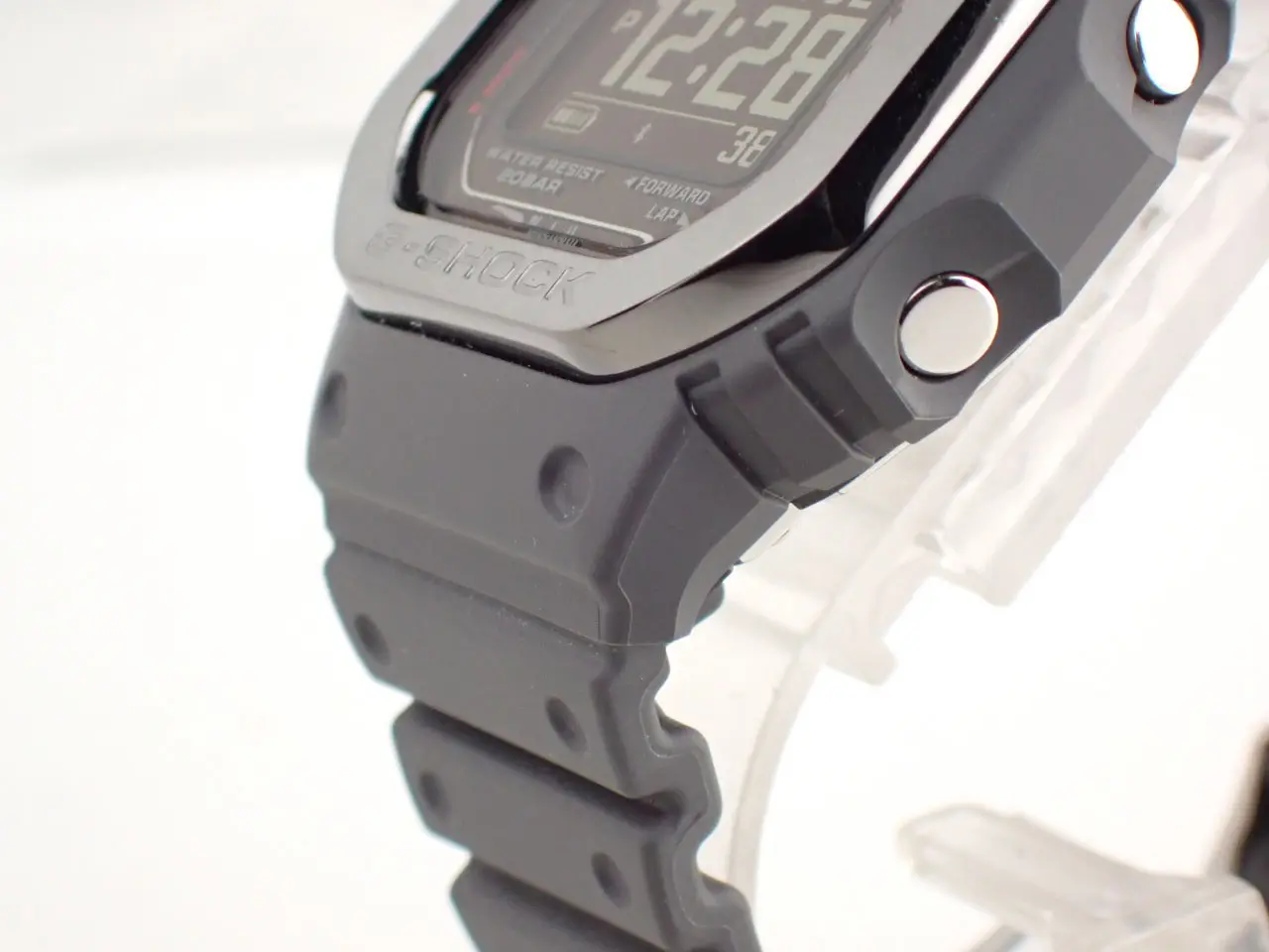 Gショックの中でも特にイマドキでお勧めの一本をご紹介!こちらはスポーツライン。見慣れたスクエア型の顔立ちに、大きくて視認性の良い時刻表示が目を惹きます。ケースは大部分が樹脂、ベゼルやプッシュボタンはステンレスとアクセントを効かせることで、快適な装着感とスタイリッシュな外観を両立させました。