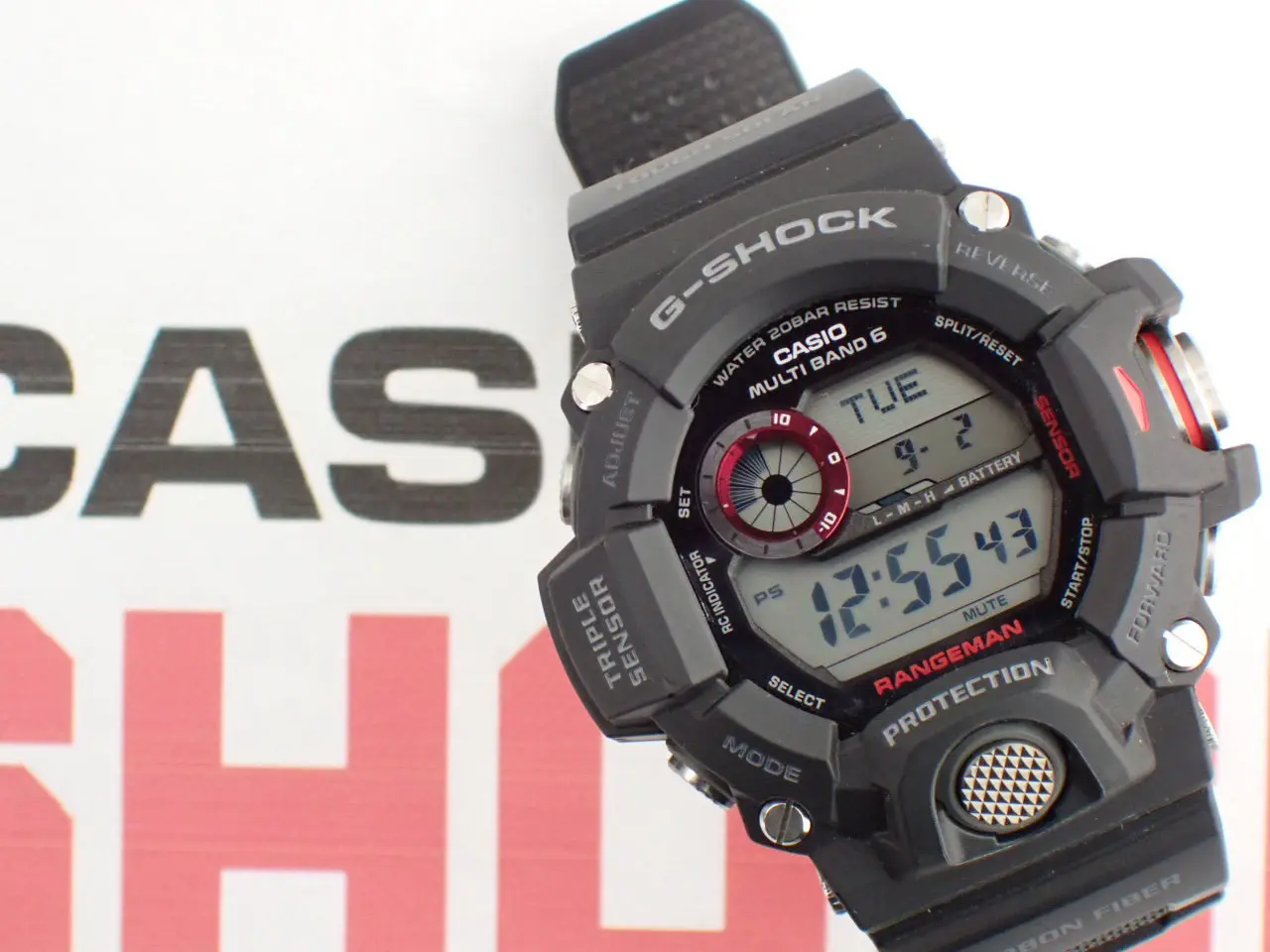 こちらの時計は、G-SHOCKの「マスターオブG」シリーズの中の「レンジマン」。レンジャーやレスキュー隊向けに設計され、過酷な環境下での信頼性と使いやすさを追求しているモデルです。