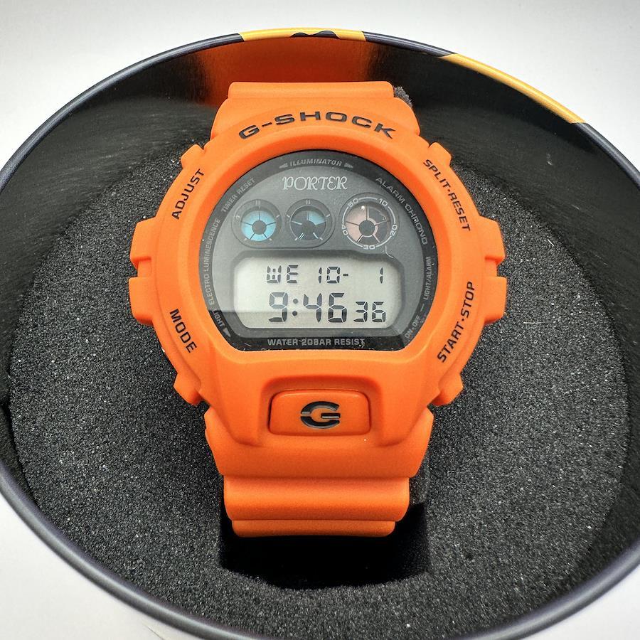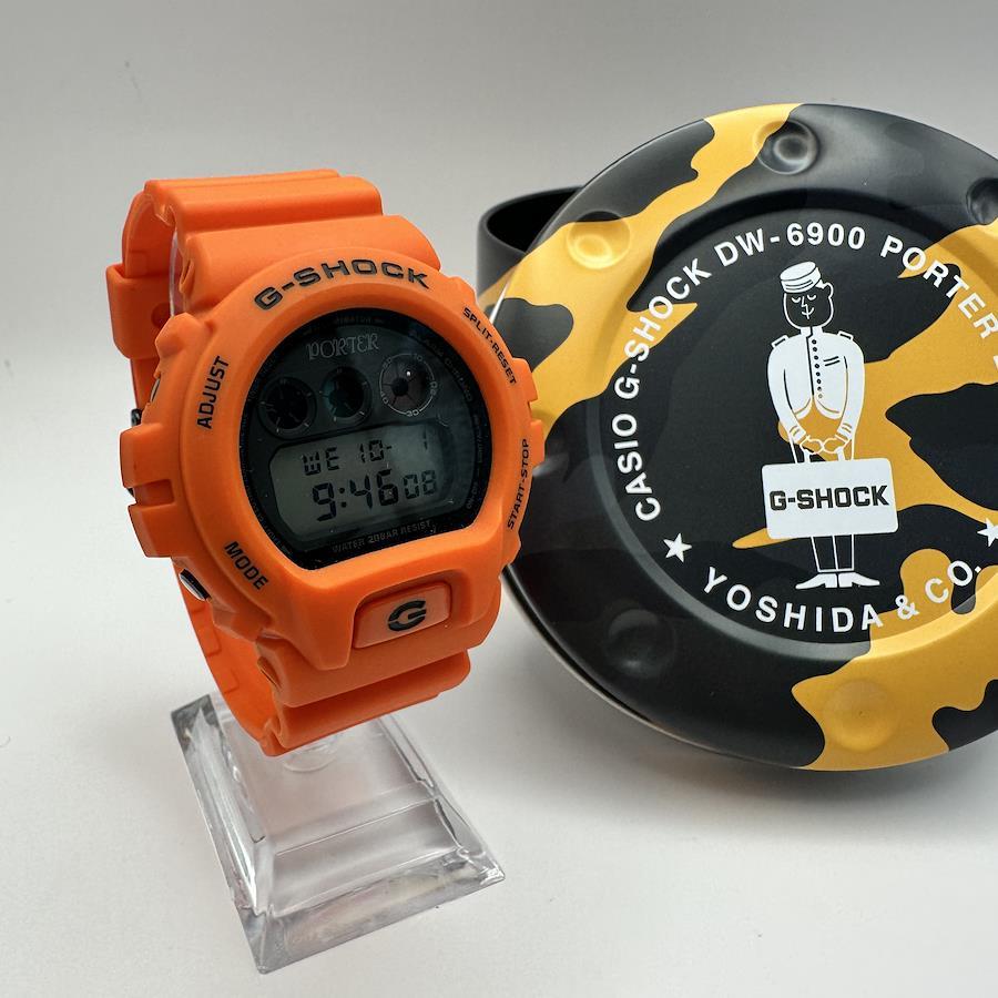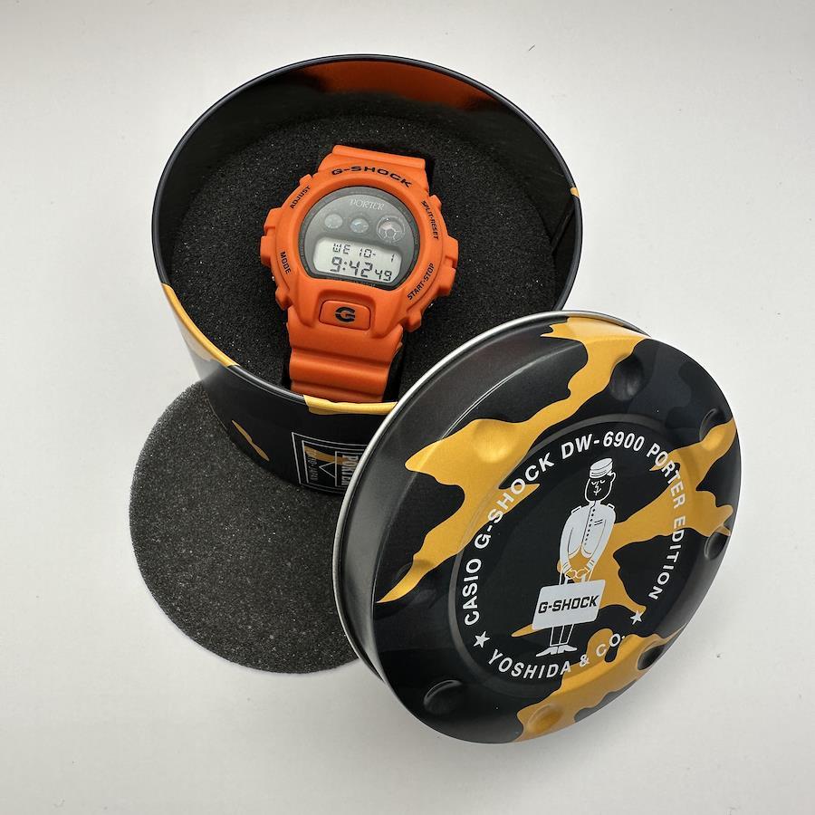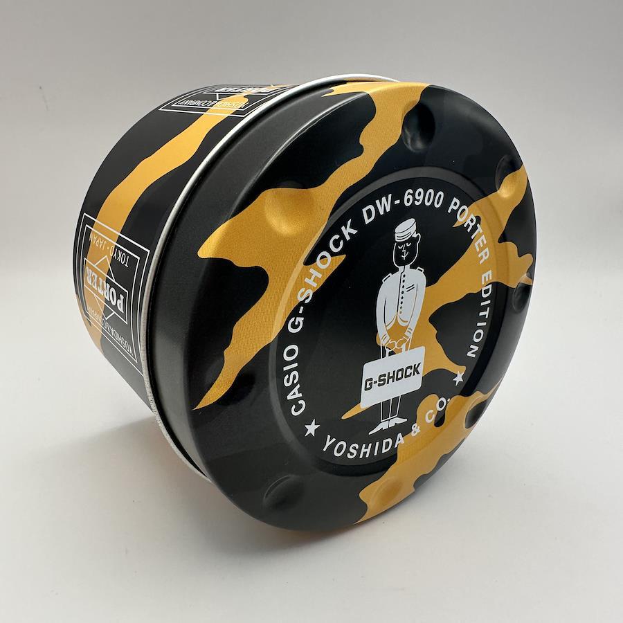PORTERを手がける吉田カバンとG-SHOCKでおなじみのCASIOがコラボした35周年記念の限定モデルになります。DW-6900FS 専用缶付き。(2018年発売)