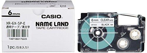 【テープ種類】透明テープ 5本入り【テープ幅×長さ】6mm×8m【タイプ】透明に黒文字【ご注意】ネームランドの性能を維持し、安定してお使いいただくために、テープカートリッジは必ずカシオ純正品をご使用ください。カシオ製品以外のテープカートリッジをご使用になると、本体への悪影響や印刷品質の低下などネームランド本来の性能を発揮できない場合があります。カシオ製品以外のテープカートリッジのご使用に起因する不具合への対応については、保証期間内であっても責任を負いかねますのでご了承ください。【免責事項】メーカーによる商品リニューアルに伴いパッケージが変更が行われた場合、新パッケージでお届け致します事ご了承願います。