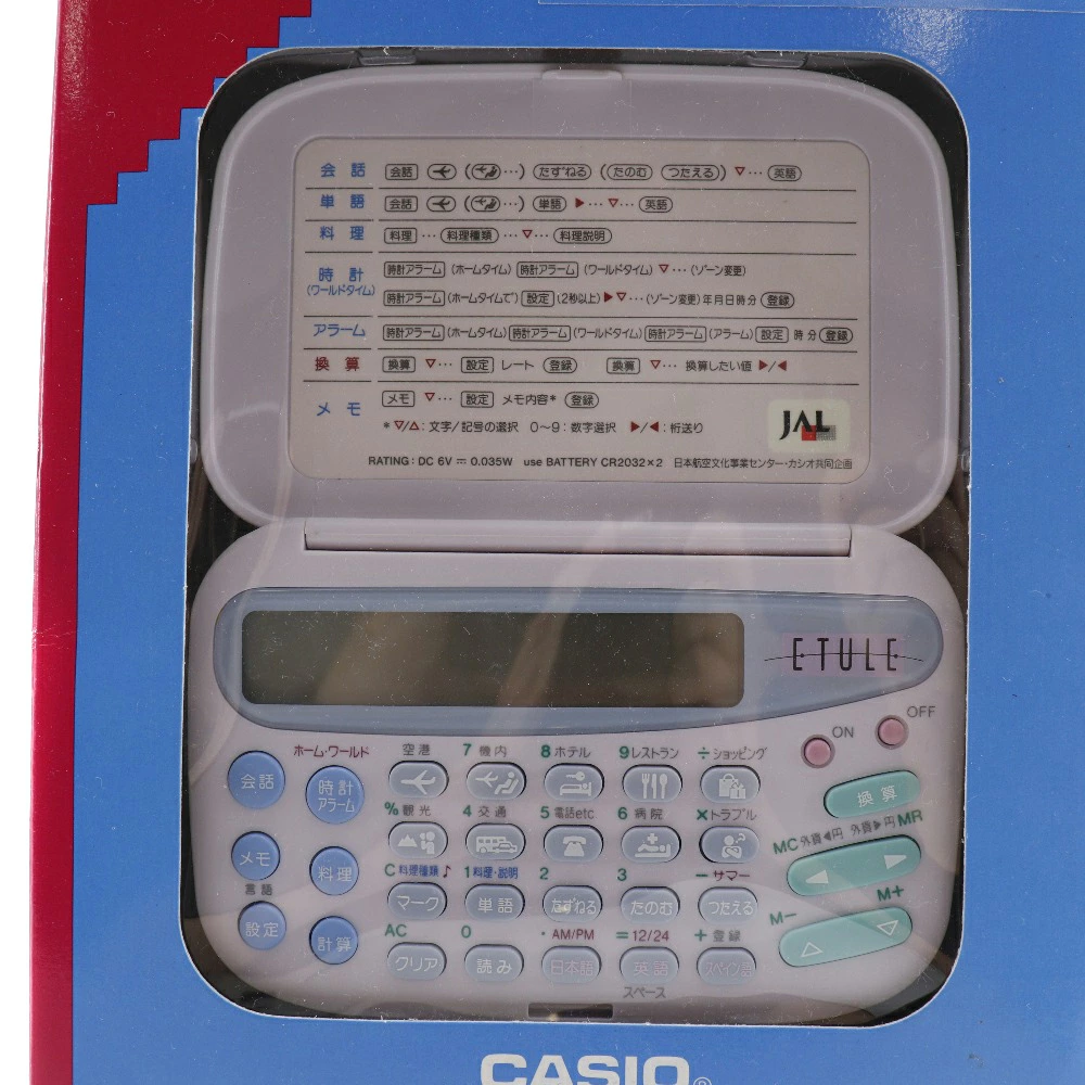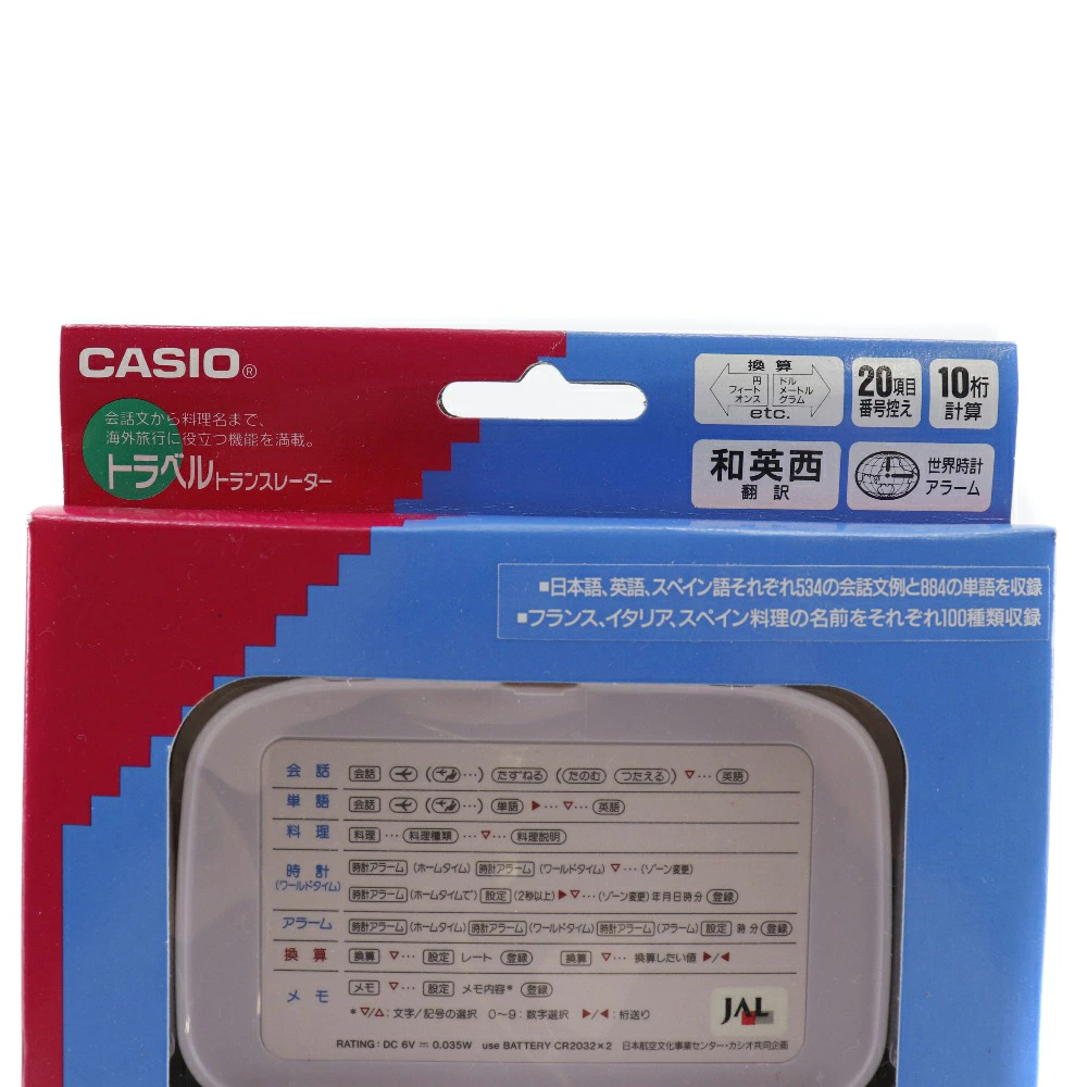 | サイズ備考 | カシオの旅行用会話変換機です。 日本語、英語、スペイン語、それぞれ534の会話文例と884の単語を収録。 フランス、イタリア、スペイン料理の名前をそれぞれ1000種類収録。 10桁の計算も出来ます。 海外旅行に役立つ機能満載です。 |