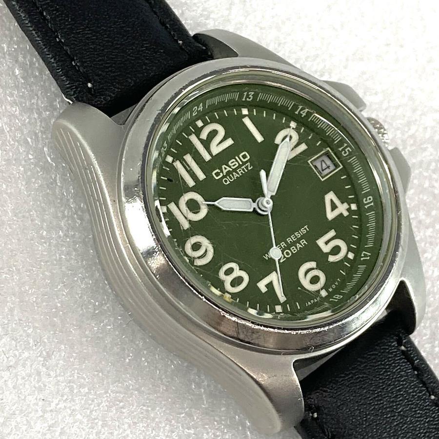CASIOミリタリーカーキ文字盤20BAR防水ヴィンテージ腕時計