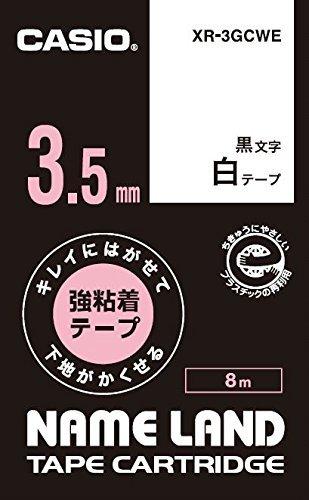 ●カシオ XR-3GCWE キレイにはがせて下地がかくせる強粘着テープ ネームランド用 白地テープ/黒文字 3.5mm●しっかり貼れる●粘着力は強粘着テープ同等。●特殊な糊なので平面でもシボ面でも剥がせるのに、しっかり貼れる!●はがしてもノリ残りがなくキレイ●剥がした後の糊残りがなく、剥がした後もきれい!●重ねて貼っても下地が透けない●テープ裏面にも加工を入れることで隠蔽性向上! 貼る先の色に影響されず、文字がしっかり読める! 文字訂正など上から貼っても下地が透けない●仕様●対応機種:ネームランド