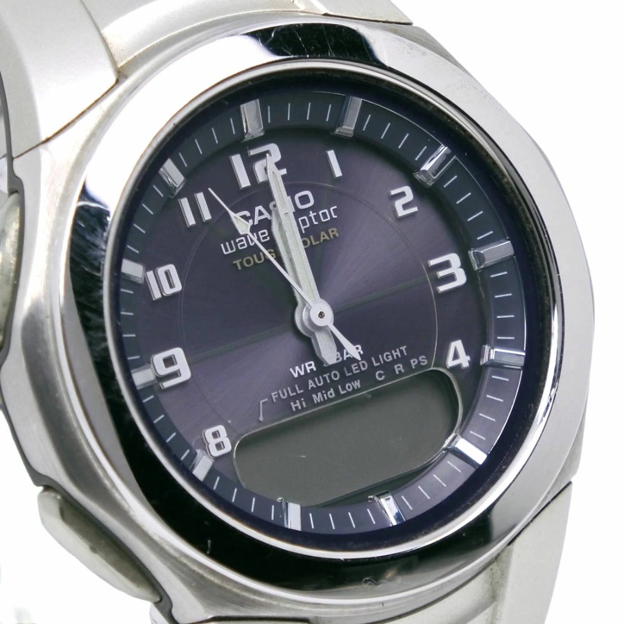 | 仕様 | ムーブメント:ソーラー電波時計 ディスプレイタイプ:アナデジ表示 ケース形:ラウンドフェイス カレンダータイプ:日付、曜日表示 文字盤カラー:グレー |