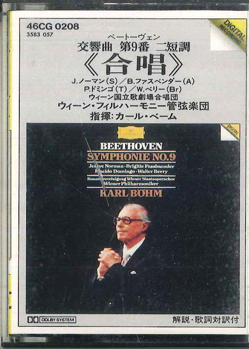 ・アーティストカール・ベーム, ウィーン・フィルハーモニー管弦楽団, ウィーン国立歌劇場合唱連盟, ジェシー・ノーマン, ブリギッテ・ファスベンダー, プラシド・ドミンゴ, ヴァルター・ベリー・タイトルベートーヴェン 交響曲 第9番 ニ短調, 作品125 合唱・レーベル・型番DEUTSCHE GRAMMOPHON 46CG0208・フォーマットカセットテープ・コンディション(盤)良い (VG+)・コンディション(ジャケット)良い (VG+)・コンディション(帯)オビなし・特記事項