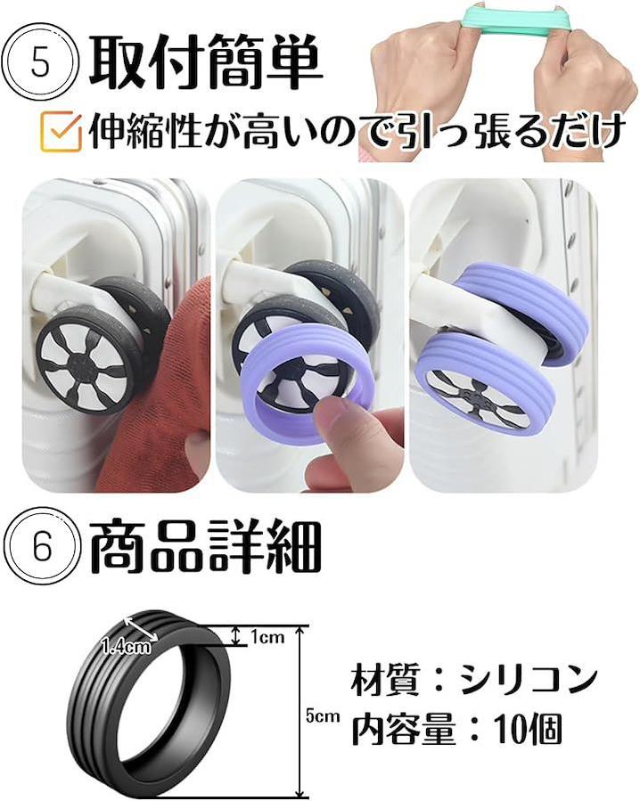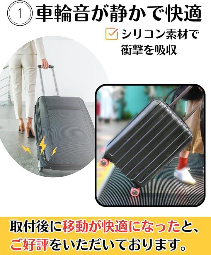 「シリコン製キャスターカバー」車輪音が静かになるので旅行や出張の際は快適に移動できます。