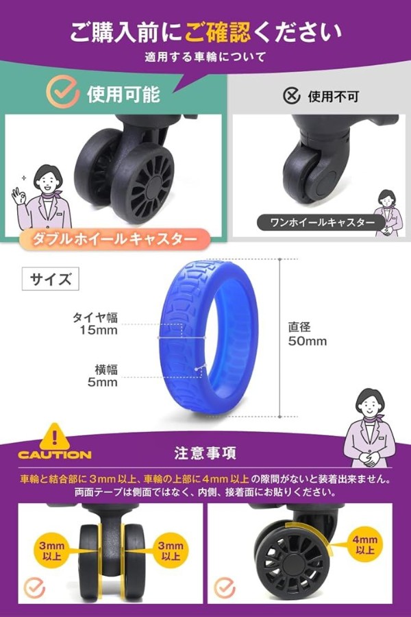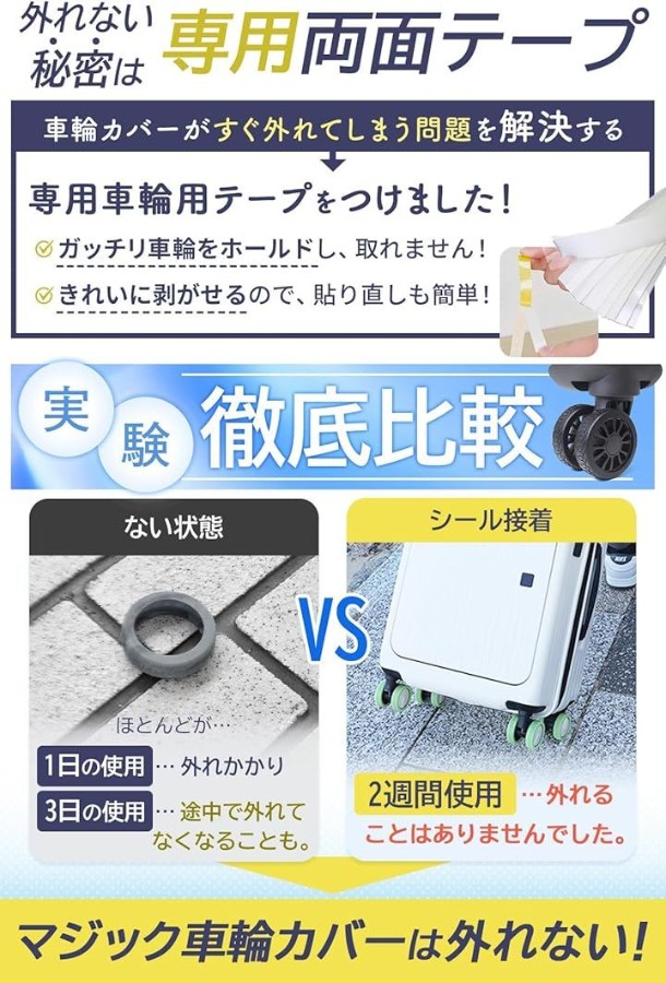 「車輪を保護」車輪を保護することでキャリーケースをより長く愛用することが可能。