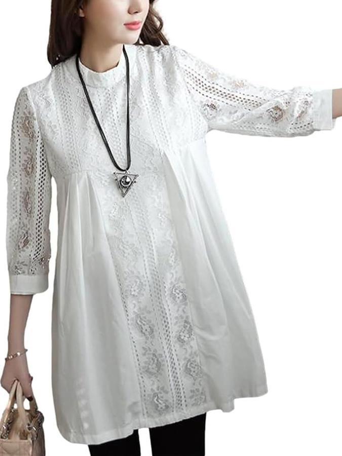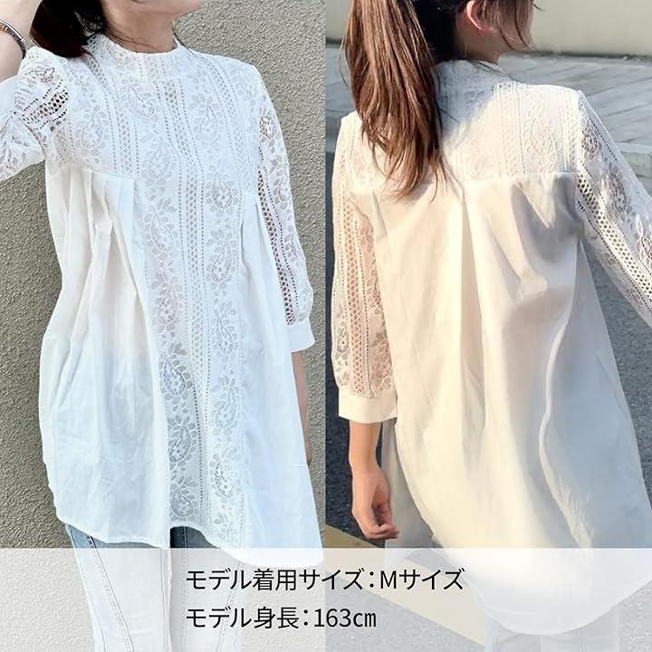上品で清楚な印象印象を与えるホワイトレースブラウス。