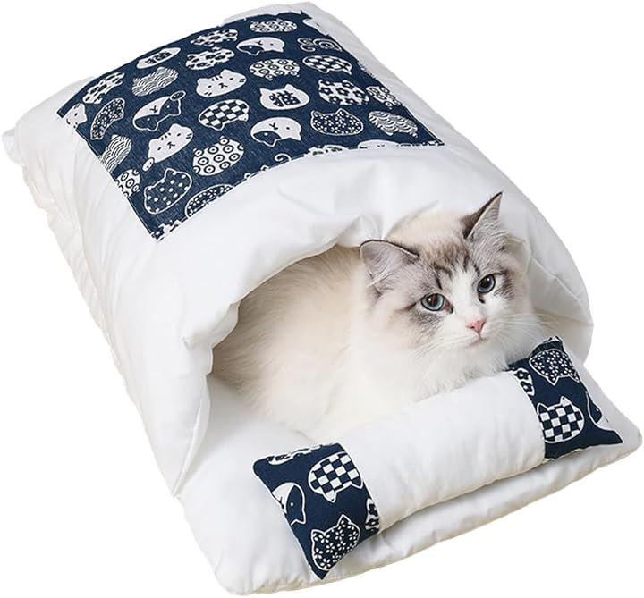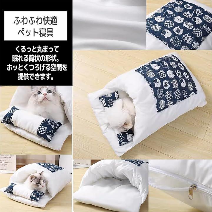愛猫のために布団のデザインがされた、温かく快適な筒形寝袋です。