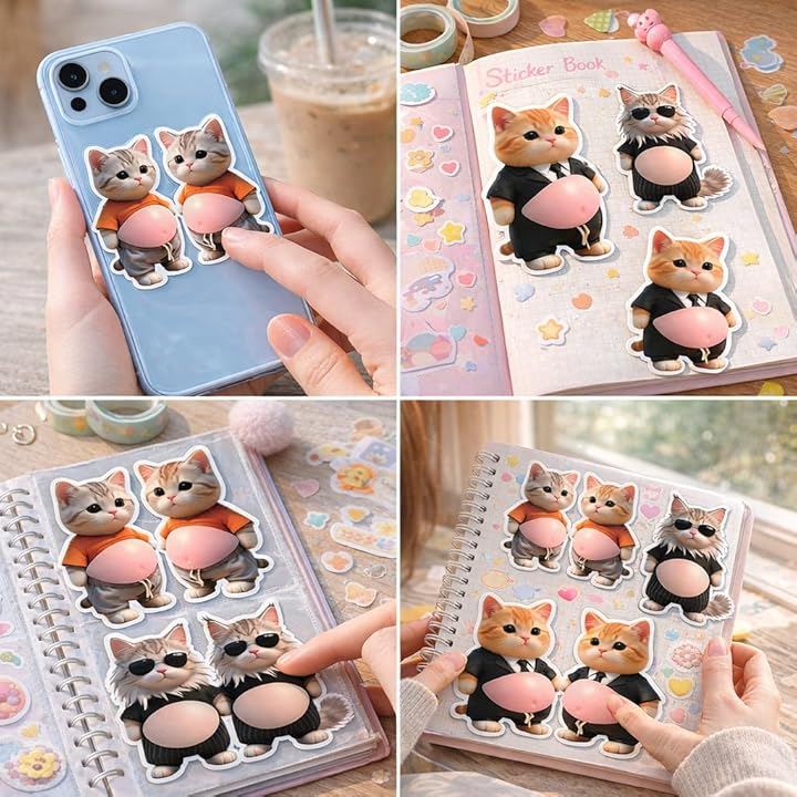 Cat Belly Stickers - 2026 Latest Soft Belly Stickers - Squishy, Plump, 3D, Chubby Cat, Adorable, Cute Sticker Book, Cat Stickers