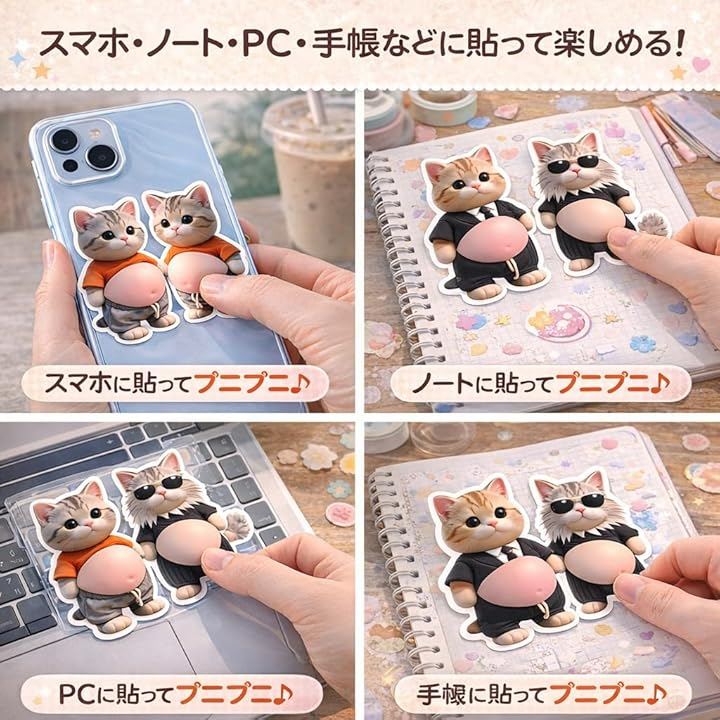 家庭・学校・オフィスなど場所を選ばず使えるため、自分用の癒しアイテムとしてはもちろん、友人や家族、子供へのちょっとしたプレゼントにも最適で、かわいい犬・猫・ぷにぷにシールや3D立体シールが好きな方に喜ばれる心温まるアイテムです。