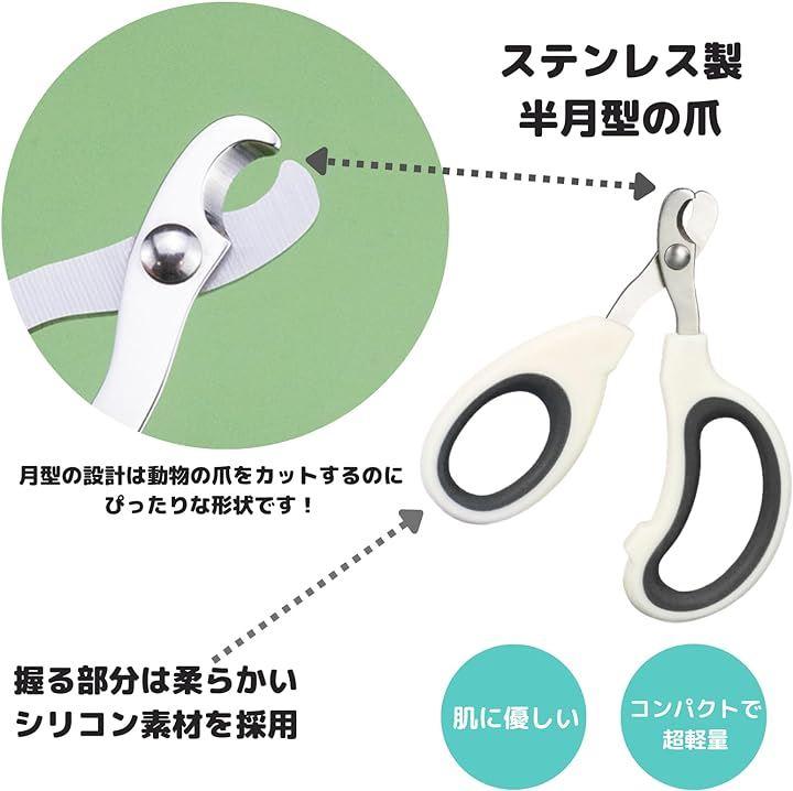 一緒に使うことの多い爪切りをセット。小型軽量・握る部分はシリコン素材で扱いやすく、刃はステンレス製の半月型で爪を切りやすい設計です。
