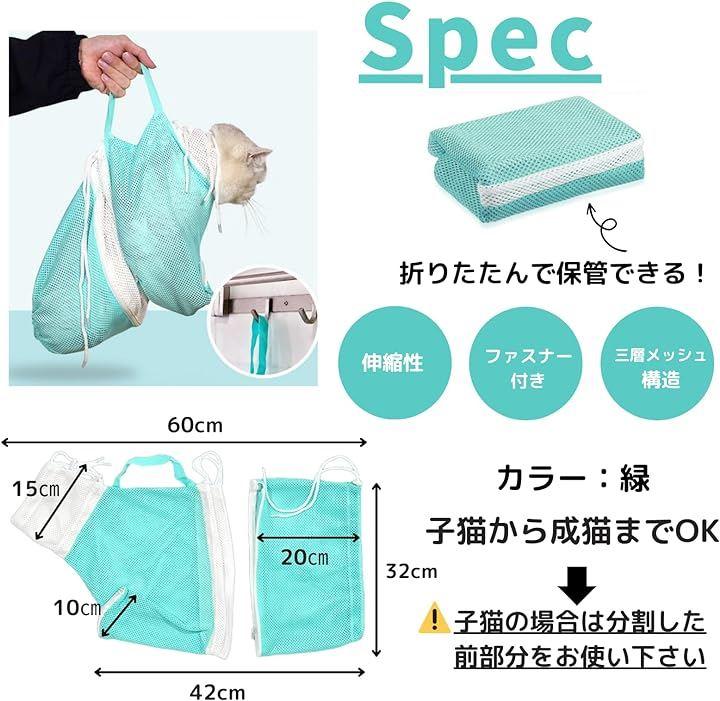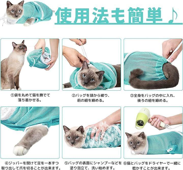 シャンプー・爪切り・注射・投薬・耳掃除など、普段のお世話中に暴れたり引っ掻いたりしてしまうネコちゃんを落ち着かせることができます。