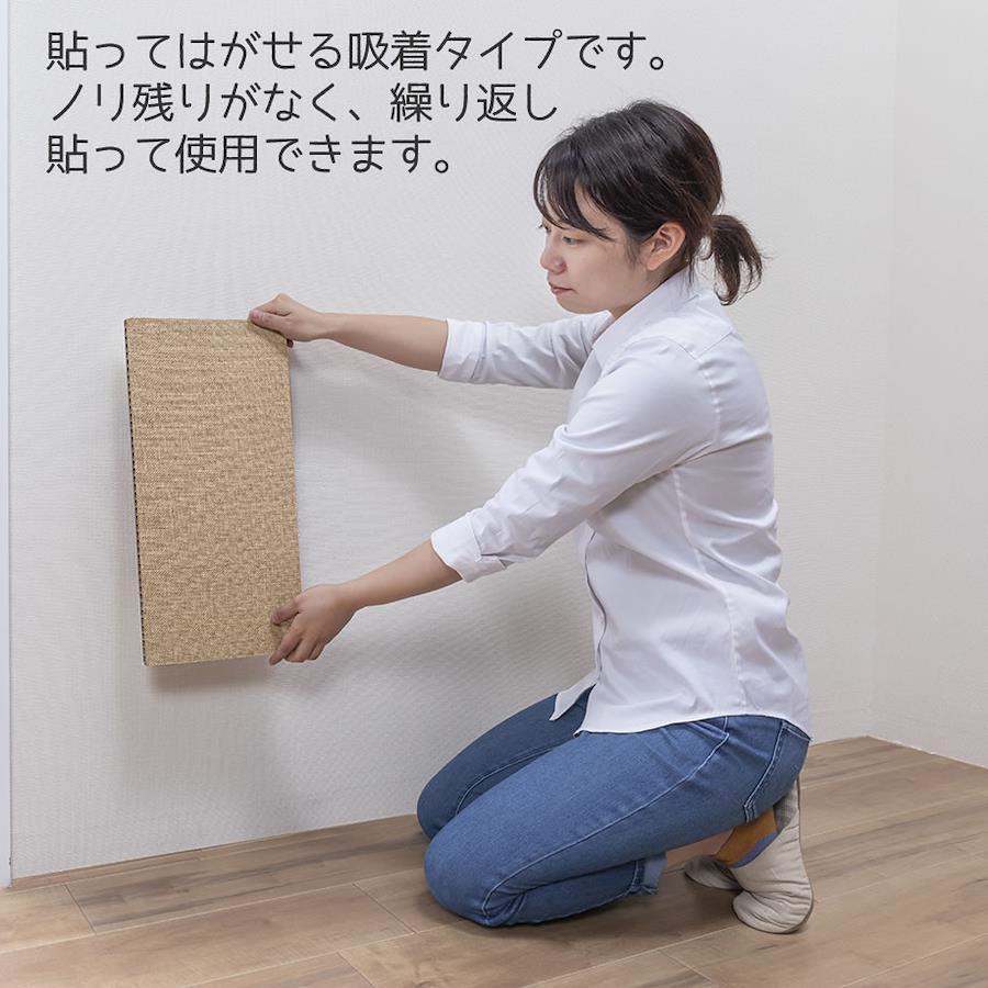 【商品情報】・壁に貼ることができる猫専用の爪とぎです。・貼る高さを猫の大きさに合わすことができます。・貼ってはがせる吸着タイプです。ノリ残りがなく、繰り返し貼って使用できます。・ヨコ向きでも貼れます。