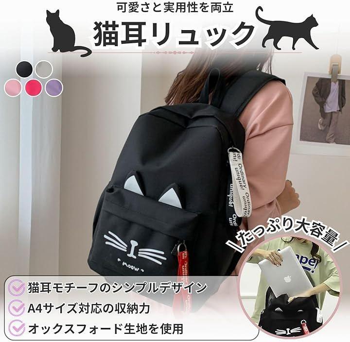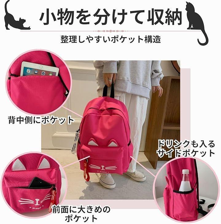 「可愛さが目を引く猫耳デザイン」愛らしい猫耳デザインが印象的なリュックサックです。