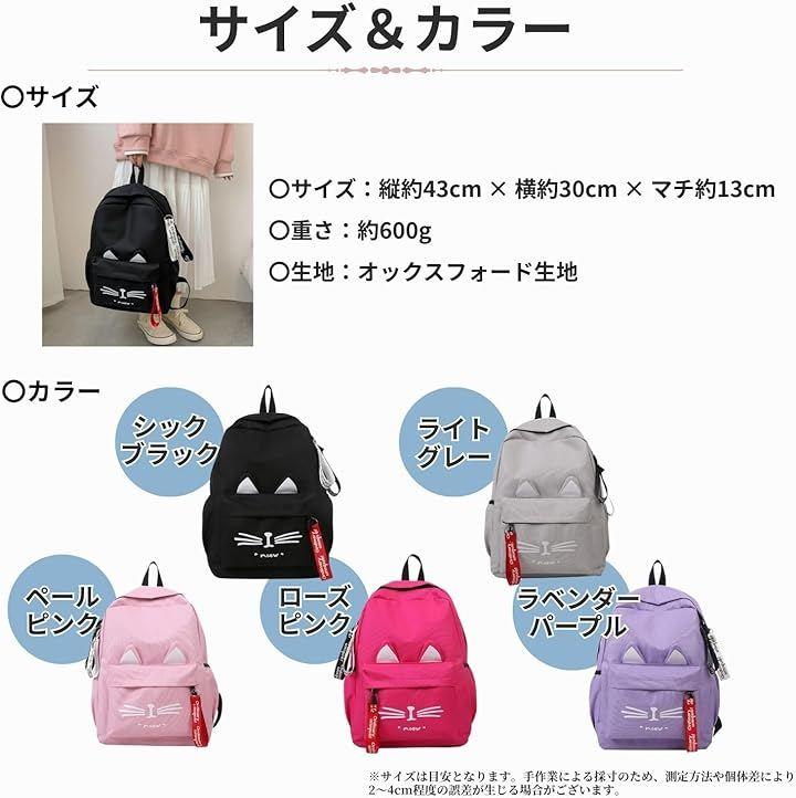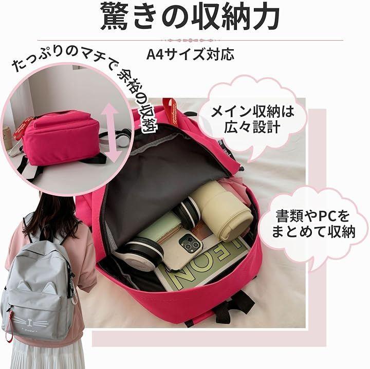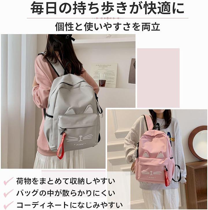 「可愛さが目を引く猫耳デザイン」愛らしい猫耳デザインが印象的なリュックサックです。