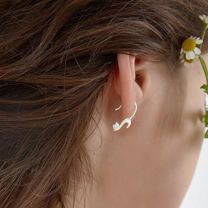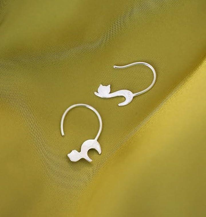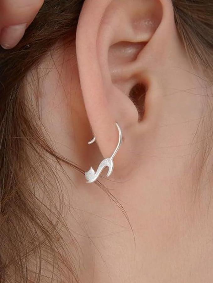 シルバーカラーの輝きが耳元を美しく引き立て、猫モチーフの可愛らしさがさりげなく主張します。
