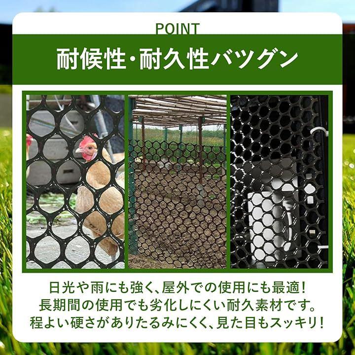 「商品詳細」セット内容:メッシュシート、結束バンド20本以上(長さにより異なります) カラー:ブラック サイズ:幅40cmx長さ3m/5m/10m 孔径:約0.8cm 材質:ポリエチレン *モニターの環境により、色の見え方に若干差が生じる場合がございます。