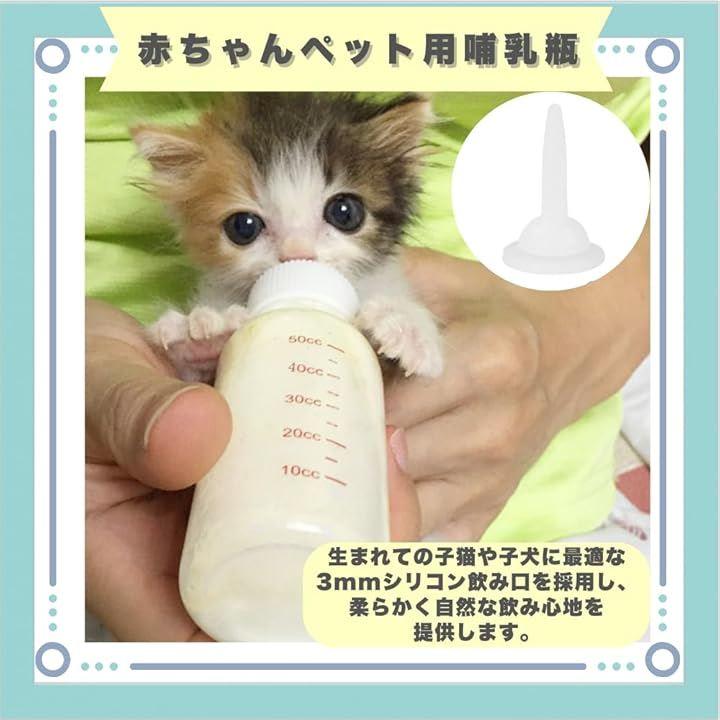 「赤ちゃんペット用哺乳瓶」生まれての子猫や子犬に最適な3mmシリコン飲み口を採用し、柔らかく自然な飲み心地を提供します。