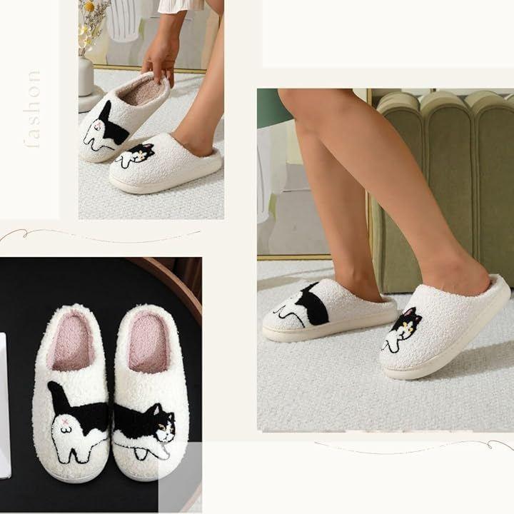 Cat-patterned, warm, cozy cat slippers for indoor use, room shoes, women's.