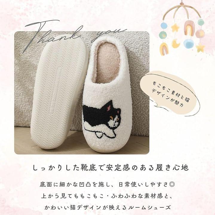 「かわいい猫デザイン・もこもこのルームシューズ」もこもことしたふわふわ感が魅力の、冬用猫デザインルームシューズです。