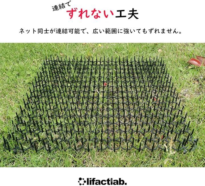 「動物を傷つけない」樹脂でできた突起部の先端は平らにカットされ、訪れた動物を傷つけずに侵入を抑制しますので心置きなく使用できます。
