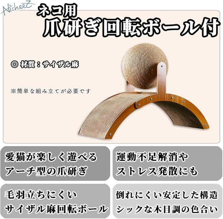 「愛猫の爪研ぎおもちゃ」ネコが楽しく遊べるアーチ型のツメ研ぎです。
