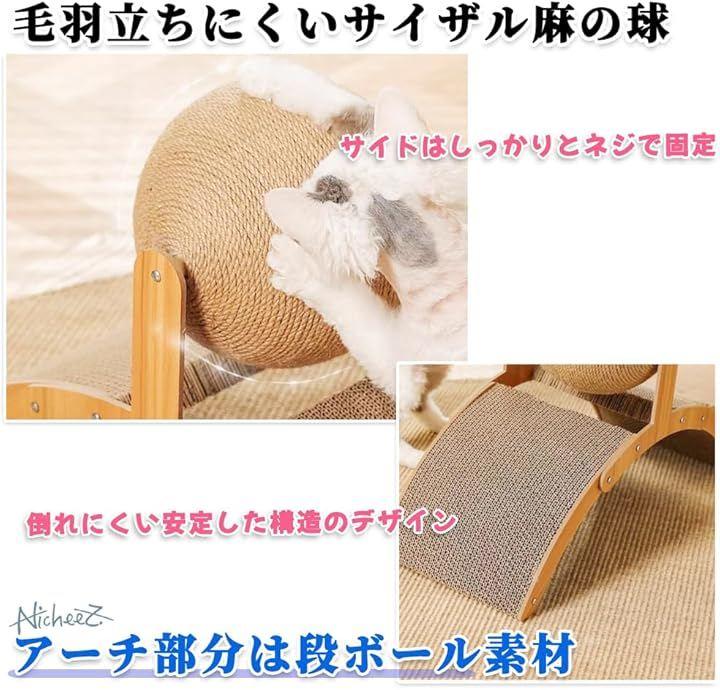 「安定性も抜群」中央の回転ボールは思いっきり引っ掻いても毛羽立ちにくいサイザル麻素材。
