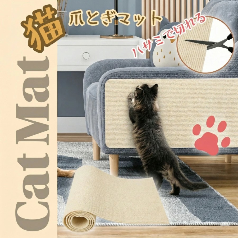 猫 爪とぎマット 猫爪とぎ 爪研ぎマット スクラッチマット 爪とぎシート ソファ保護 ソファ傷防止 家具保護 傷防止シート 壁保護 柱保護 イス保護 粘着シート 貼るだけ カットできる ハサミで切れる 猫タワー 保護シート ひっかき防止 猫用品 ペット用品