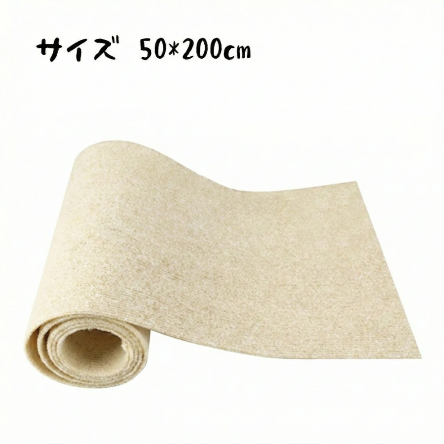 本品は粘着式の爪とぎマット(50×200cm)で、必要なサイズにハサミでカットして貼るだけ。ソファ側面・壁・柱・猫タワーなど、気になる場所に合わせて使えます。