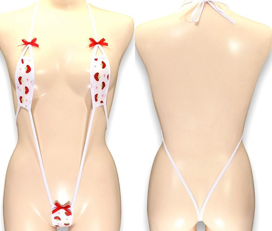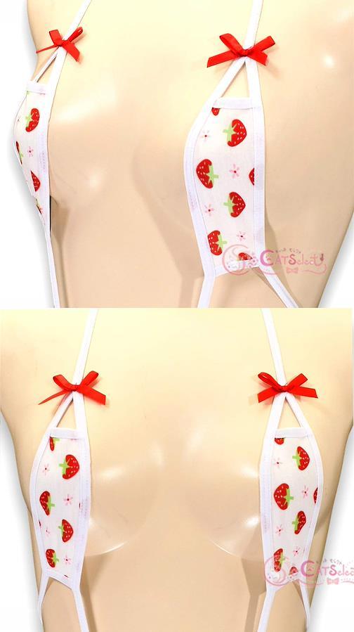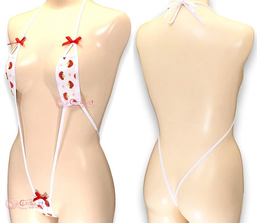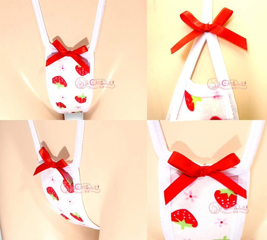 Cat Select Micro Bikini, Strawberry Pattern, Sexy Lingerie, Extreme Underwear, Cosplay Swimsuit, T-Front, B28, White, F
