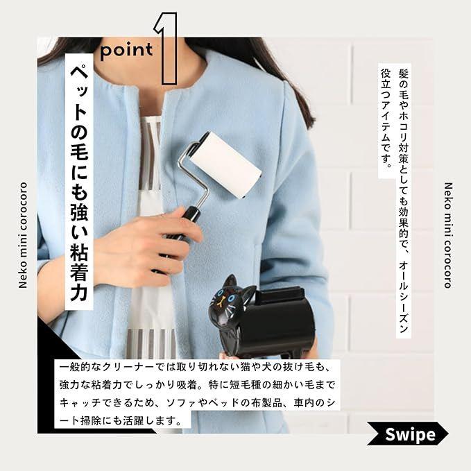 「可愛らしいネコ型ミニ粘着クリーナー」ネコ型のデザインがユニークで可愛らしいので、見た目にも楽しく、使うのが楽しみになるアイテムです。