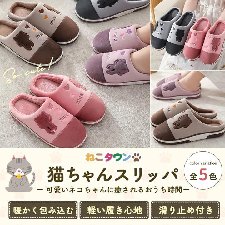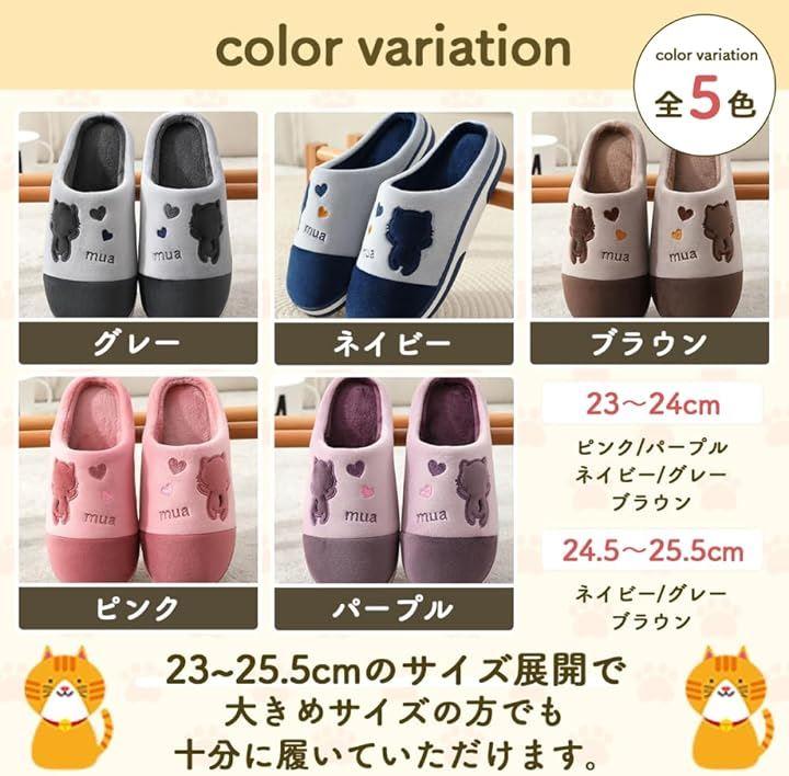 「5色展開で選べる楽しさ」ピンク、パープル、ネイビー、グレー、ブラウンの豊富なカラーバリエーションのスリッパです。