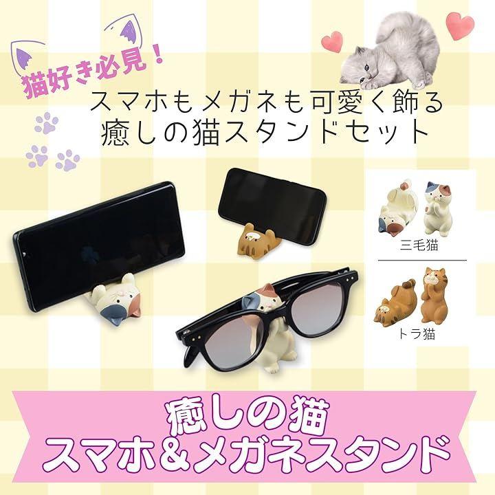 Cat smartphone stand, tabletop smartphone stand, cute glasses stand, glasses holder, interior goods, ornament, entrance, healing goods, desk goods, pen holder, small item organizer, object, animal motif