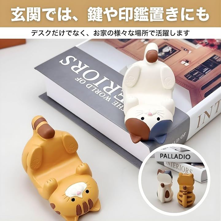 「商品仕様」サイズ1個:約11x7.5x4cm(重量:約10g) / 材質:樹脂 *三毛猫2個セット、トラ猫2個セット、三毛&トラ&黒猫3個セットのバリエーションをご用意しているので、お好きなものをお選びください。