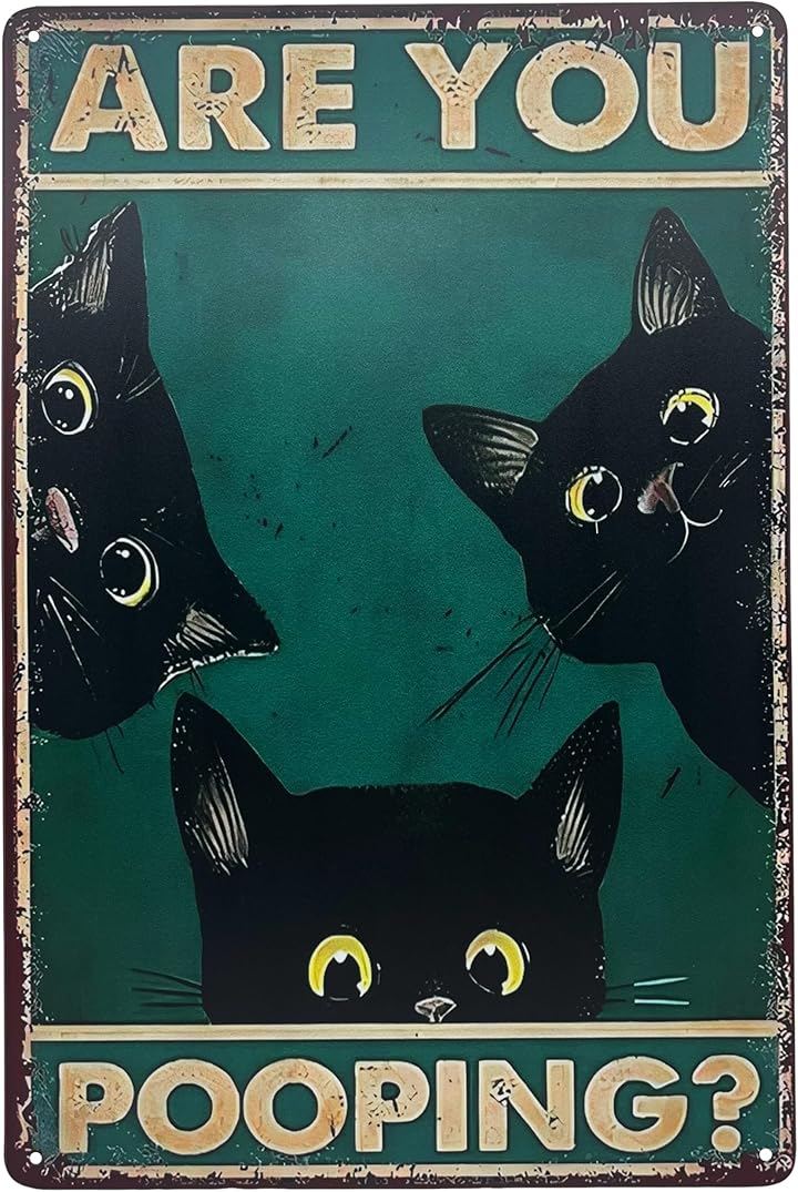 レトロでカワイイ。黒猫3匹がデザインされたブリキ看板です。