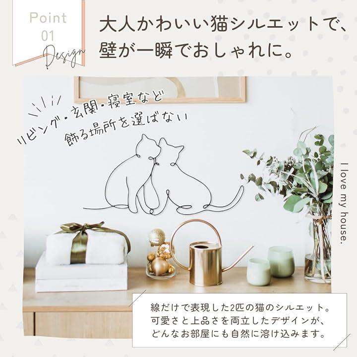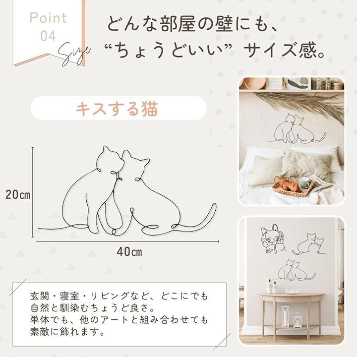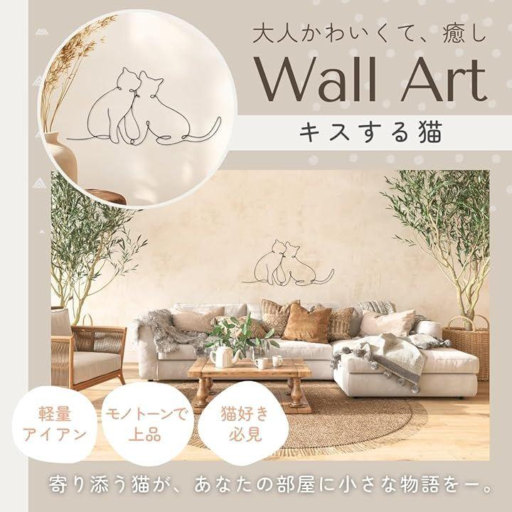 キスする猫は、寄り添うふたりの姿が愛らしく、壁に小さな物語を生む上品なライン。