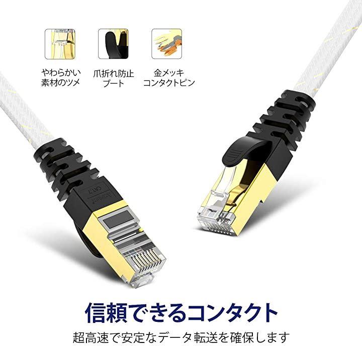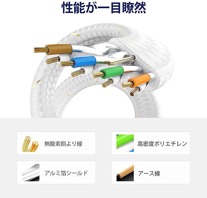 次世代移動通信に対応な10ギガビットイーサネットのlanケーブルです、4対8芯シールドケーブル、マルチストランド無酸素銅、小ノイズと混信を保証します、超高速で安定した速度を確保する。