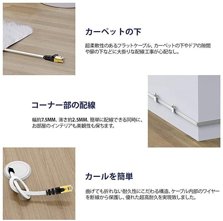 フラットタイプなので利便性が向上した。超柔軟性のあるフラットケーブル、狭い隙間やカーペットの下ど設置場所を選びます。