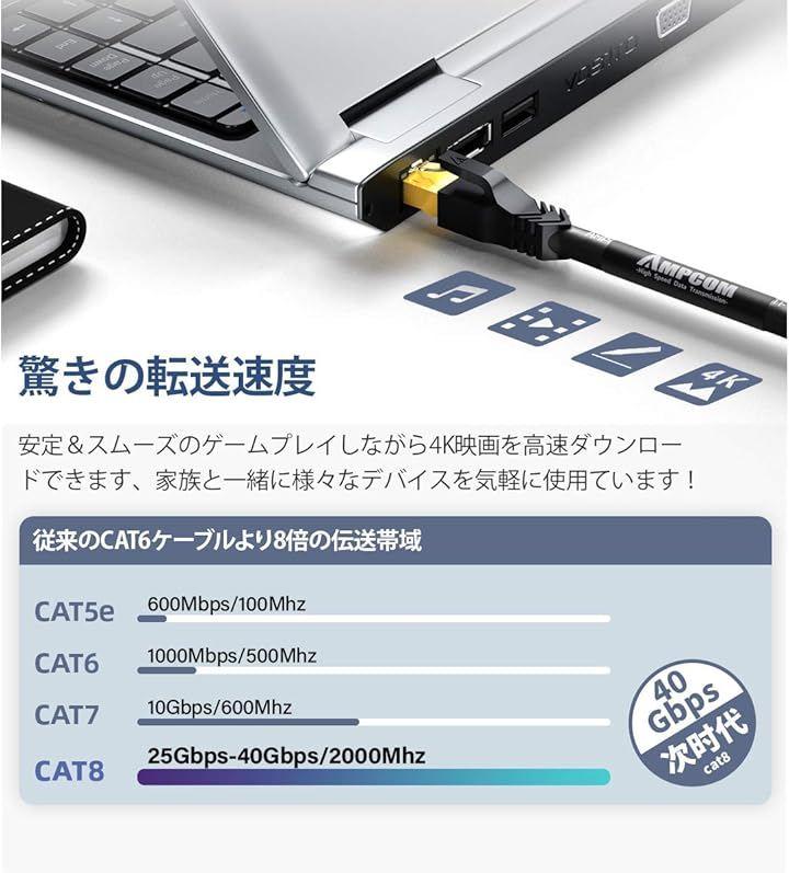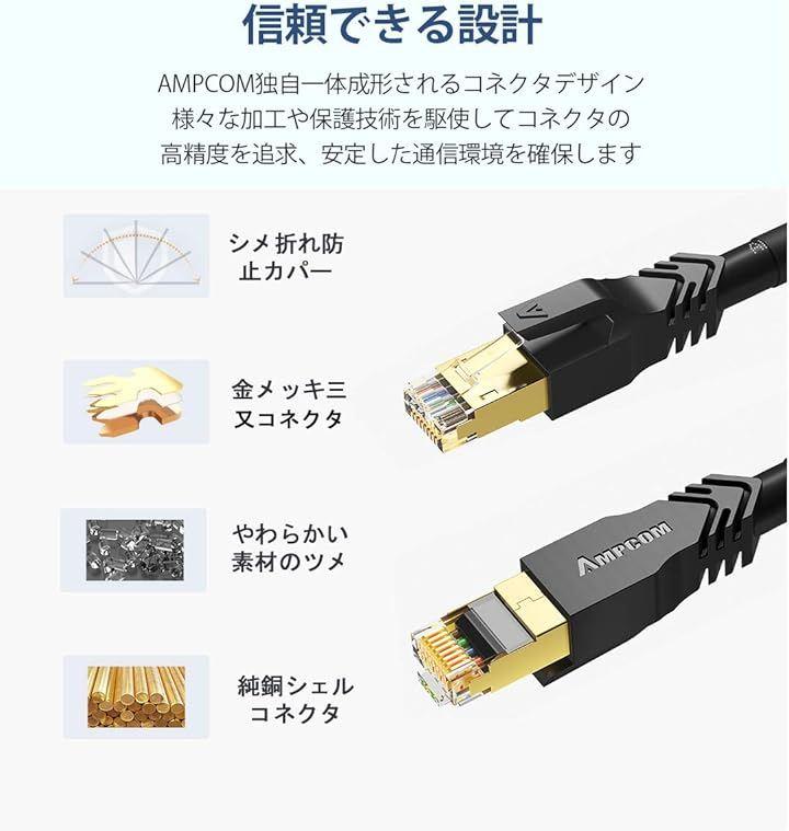ご覧いただくのはAMPCOMのカテゴリ8に準拠する 有線ラン ケーブル です。