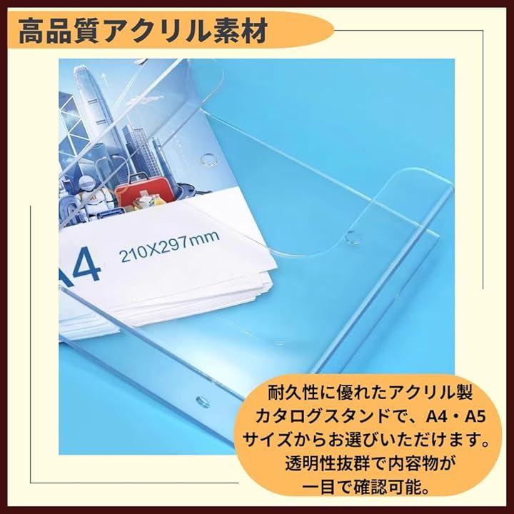 「高品質アクリル素材」耐久性に優れたアクリル製カタログスタンドで、A4・A5サイズからお選びいただけます。