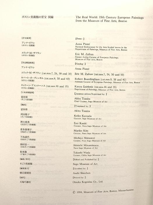 Catalog: Treasures of the Museum of Fine Arts, Boston: 19th Century European Masters, 1995, Sogo Museum of Art