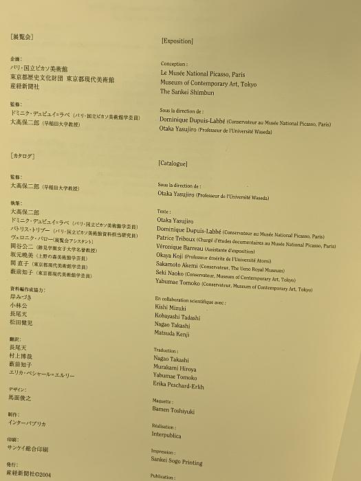 Catalogue of the Picasso Exhibition, Paris, National Museum of Fine Arts, 2004, Sankei Shimbun