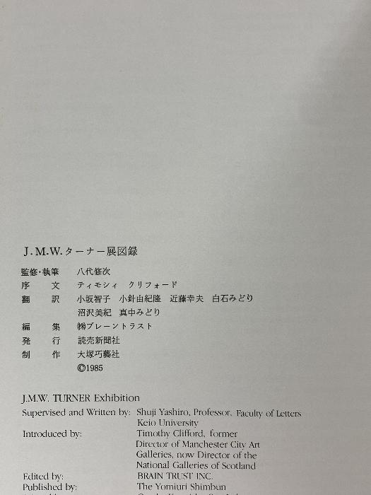 Catalogue of the Turner Exhibition, Manchester Art Gallery, 1985, Yomiuri Shimbun