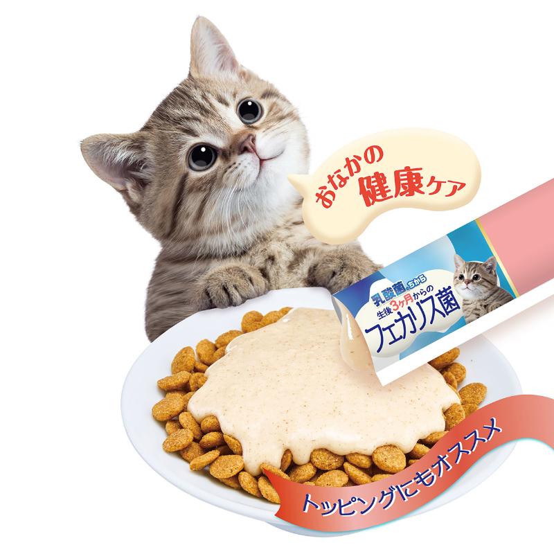 ・ネコちゃんの腸内フローラに適している乳酸菌(フェカリス菌)と善玉菌のエサとなるオリゴ糖を配合しました。・1本5gの食べきりサイズだからおやつとしても、フードのトッピングにも・水分補給にもオススメ・濃厚な旨み広がるまぐろ使用・着色料、酸化防止剤、香料 不使用