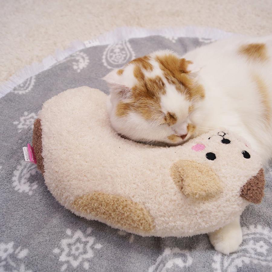 ・1日のほとんどを寝て過ごす猫ちゃんのための気持ちいいあごのせ枕。・やわらかで気持ちいいもこもこ生地を使用。・ボリュームたっぷりでふみふみ行動もできる。・あごをのせて、時には寄り添って、猫ちゃんがラクな姿勢を取りやすいフォルムとボリューム。・生地、中綿とも材質はポリエステル。手洗いできて清潔に使える。