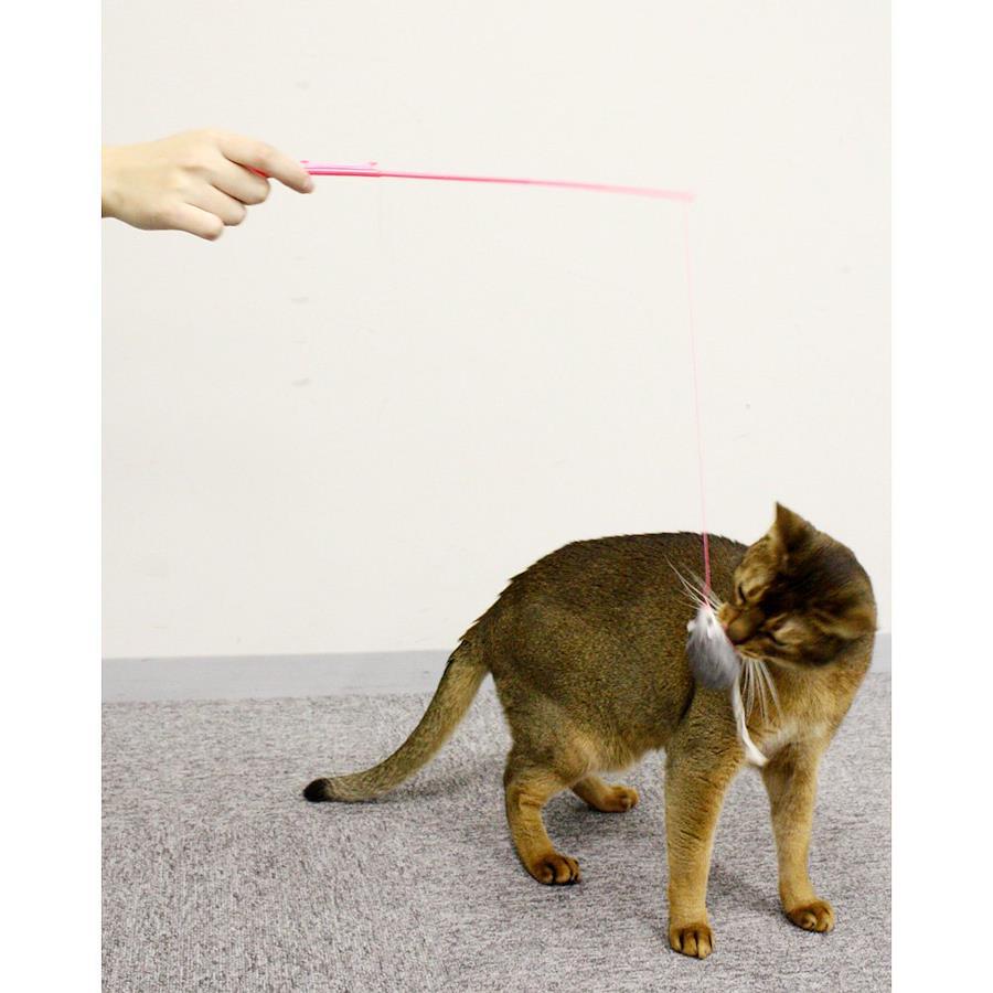 ・糸の先に天然毛のネズミおもちゃがついた釣竿タイプの愛猫用おもちゃ。・ネズミのおもちゃはウサギ毛で覆われ、天然素材に愛猫もおおよろこび。・糸の長さは調節可能。生きているようにネズミを動かすことができる。・竿は全長約25cm。糸は約1mまで伸ばせる。・愛猫と一緒に遊ぶコミュニケーション玩具。